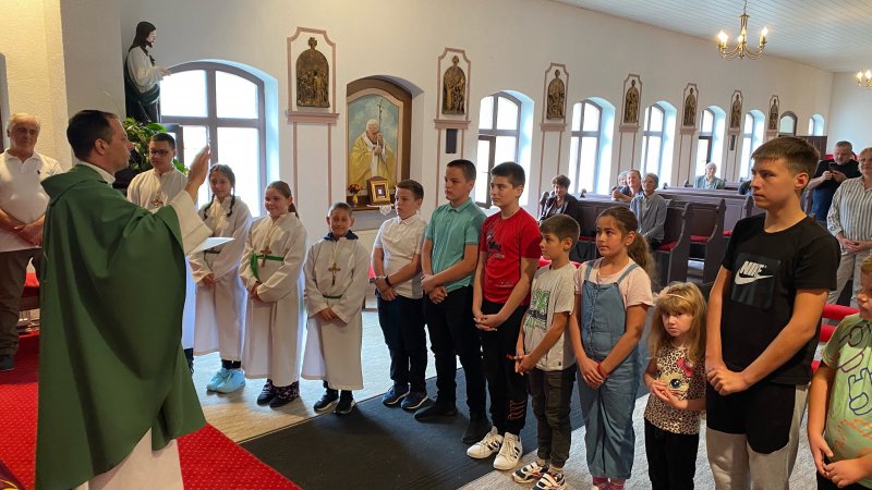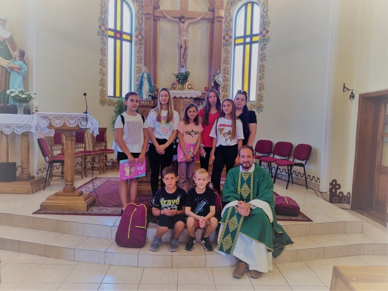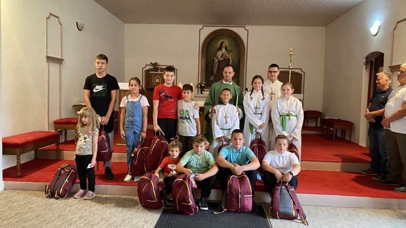 Djeca su na svetu misu ponijela i svoje školske torbe, koje je župnik blagoslovio zajedno s djecom, a svi učenici su, pristupajući pojedinačnom blagoslovu, primili na dar i novu školsku torbu sa školskim priborom i bilježnicama, te krunicu kao pripremu za nadolazeći mjesec Gospine krunice. Molilo se i za dobre ljude koji su svojim darom omogućili ove poklone, preko Caritasa Srijemske biskupije i Hrvatskog Caritasa. Slavlje se nastavilo radosnim druženjem u župnoj dvorani.