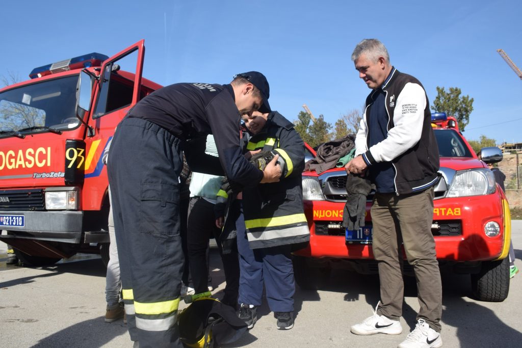 Po završtetku vežbe đaci, stručno osoblje škole, kao i roditelji učenika mogli su da se upoznaju i druže sa vatrogascima spasiocima. Učenici su tu priliku iskoristili da se slikaju obučeni u zaštitnu opremu vatrogasaca, kao i sa samim vatrogascima. Pojedinima su vatrogasna vozila bila zanimljivija i vreme predviđeno za druženje su iskoristili da se slikaju u kamionu.